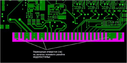 Почему недопустимо делать переходные отверстия (via) на ламелях (контактных площадках) ножевого разъёма?